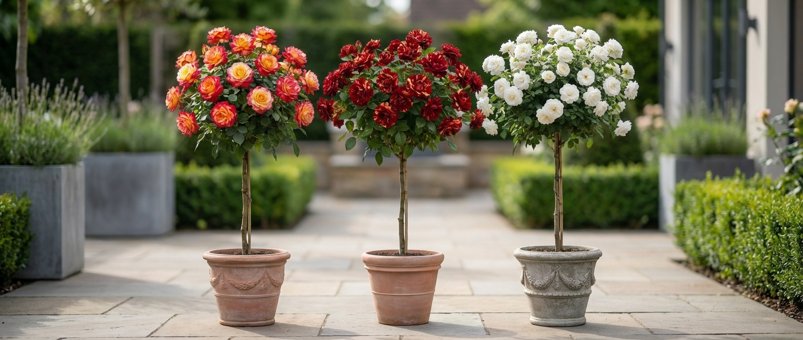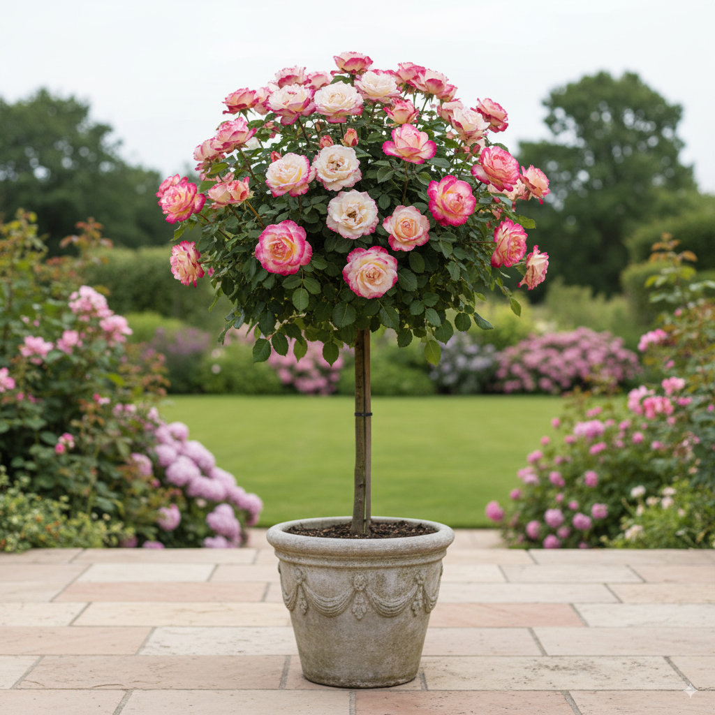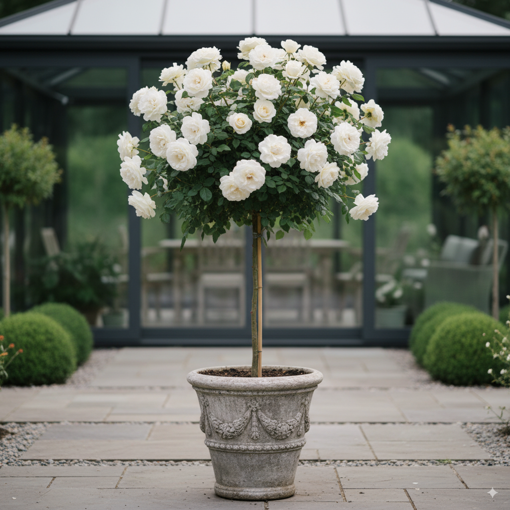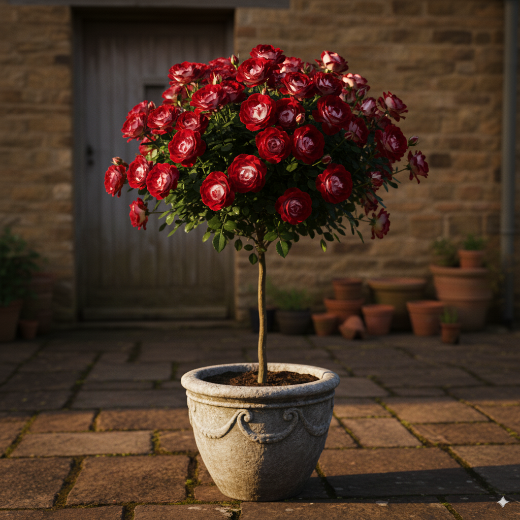 Stromčeková ruža zasadená v črepníku je ideálnou voľbou, ak si želáte získať originálnu dekoráciu terasy, balkóna alebo záhrady. Táto ruža vnesie do vášho priestoru nádych exotiky, vznešenosti a luxusu.